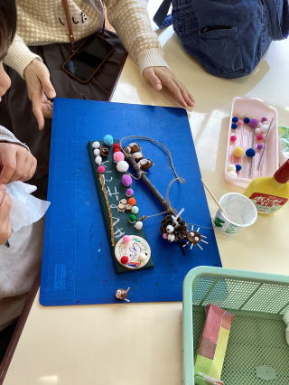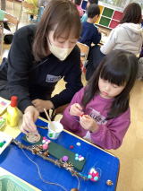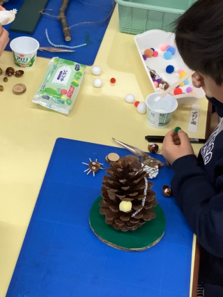 珍しい大きなまつぼっくりのツリーを作る子もいました。
