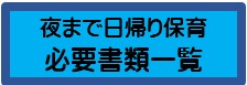 おひさまのいえ夜まで日帰り保育資料一覧 下記のバナーをクリックすると、書類を表示・印刷することができます。 印刷ができない場合はFAXで送付する事もできますのでお問い合わせください。 TEL 093-741-0468 食事書類は令和8年度版です。 その他書類は、準備が整い次第、更新いたします。