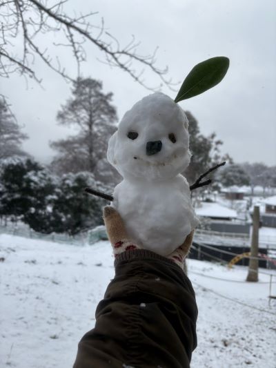 雪だるまを作ったり、草スキーならぬ本物のスキーをしたりして、