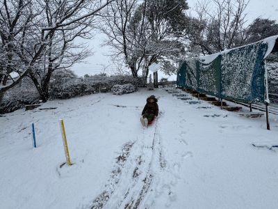 おひさまのいえも周辺遊具に5センチほど雪が積もったので、