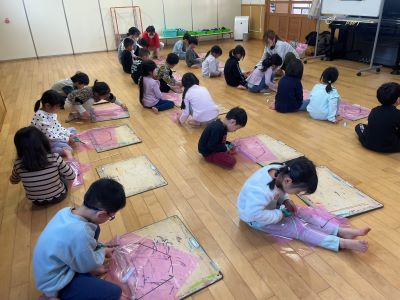 おひさまのいえ職員が訪問先に出向き、凧製作の指導をさせていただきました。